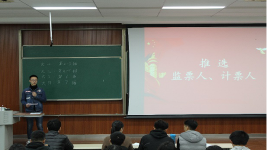 大会进行第二项,推选监票人与计票人。由周兆炜同学当选总监票人,刘佳璇,马诩洋,王宇豪,邓惠中同学当选监票人。接着由与会成员推选黄色小视频