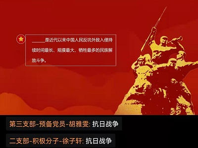 党委组织员、研究生辅导员林玮致词,她对本次线上党史主题活动开展的形式给予了肯定,并对参会的同学提出了鼓励与期望,希望同学们要牢记习近平总书记讲话精神,以党的方向为旗帜,以党的信念为力量,以党的历史为磨炼。随后在主持人的带领下,大家观看了党史教育视频,同学们重温我党辉煌的历史。在通过视频学习党史文化知识后,进行了党史知识竞答,此间同学们踊跃参加,充分展现了同学们的热情。