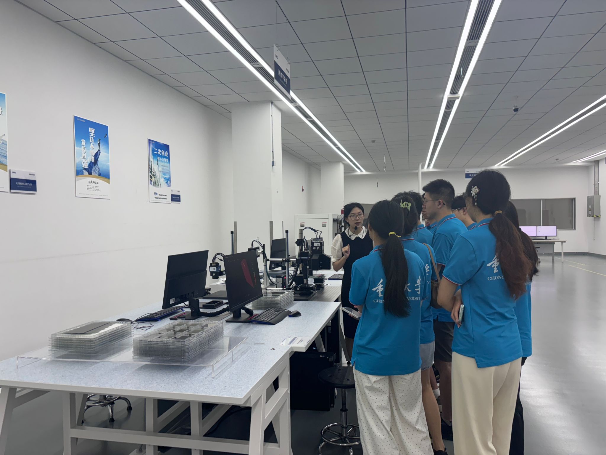 “领‘物’未来,‘理’行天下”实践团来到苏州华兴源创科技股份有限公司进行参观学习,团队师生踏进展厅、研发车间和光电实验室,近距离感受了产品从研发到生产再到测试的全过程,深入了解企业设备的性能、用途和市场前景。