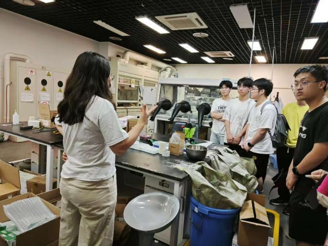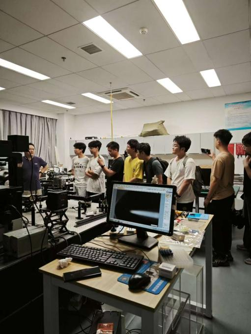活动伊始,黄映洲老师带领同学们参观了107实验室。黄老师向同学们介绍了拉曼光谱等实验仪器,又了解仪器的基本原理和操作方法以及仪器的应用领域。此外,黄老师还向同学们展示了实验室的部分创新成果,同学们惊叹连连。最后,黄老师向同学们表示只要有想法肯努力,实验室欢迎本科同学进组实习,不断提升自我。