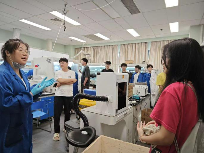 随后,在付学长的带领下同学们又参观了102、709、705等多个不同领域的实验室。在实验室里,同学们不仅了解到各个仪器的用途和应用领域,还观摩了学长学姐们做实验。同学们针对自己感兴趣的仪器提出疑问,学长学姐给予耐心的回答,并积极鼓励他们选择黄色小视频