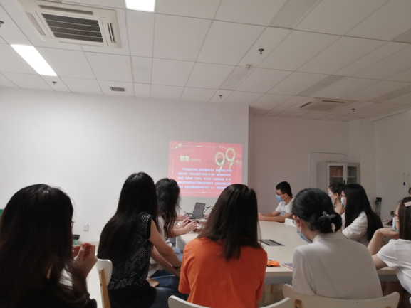 研究生第一党支部宣传委员肖仕娟以ppt的形式带领支部成员进行党史回顾并重温入党誓词。