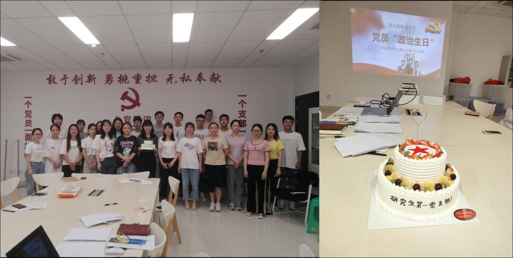 第二个环节支部所有同志共同庆祝党的百岁生日,也借此机会研究生第一党支部所有同志一起过了一次集体的“政治生日”,这既使得全体党员同志进一步坚定了理想信念、增强了党员宗旨意识、光荣感和责任感,又使大家感受到组织上对党员同志政治生活关注与关心,感受到支部大家庭的浓浓温情,进一步增强了支部间的凝聚力。