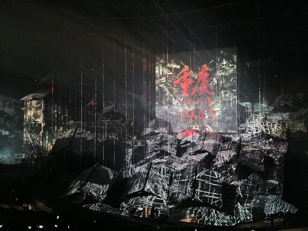 “重庆•1949大剧院”是一座现代化的超大型钢结构建筑,在世界先进剧院建筑群体中,也可堪称为一座极为罕见的创新性建筑作品,目前世界上最大的单一室内动态沉浸式表演剧场。走进剧院,同志们就被其壮丽的装修、舞台设计、布景设计所震撼。“黑云翻卷着山城,江水撕扯着伤....”,在中国抗日战争胜利纪念日暨世界反法西斯战争胜利纪念日之际,弘扬“红岩精神”的史诗实景式剧目《重庆1949》在《暗流》曲目中拉开帷幕,我们在座的上千名观众都坐在位置上屏息期待。