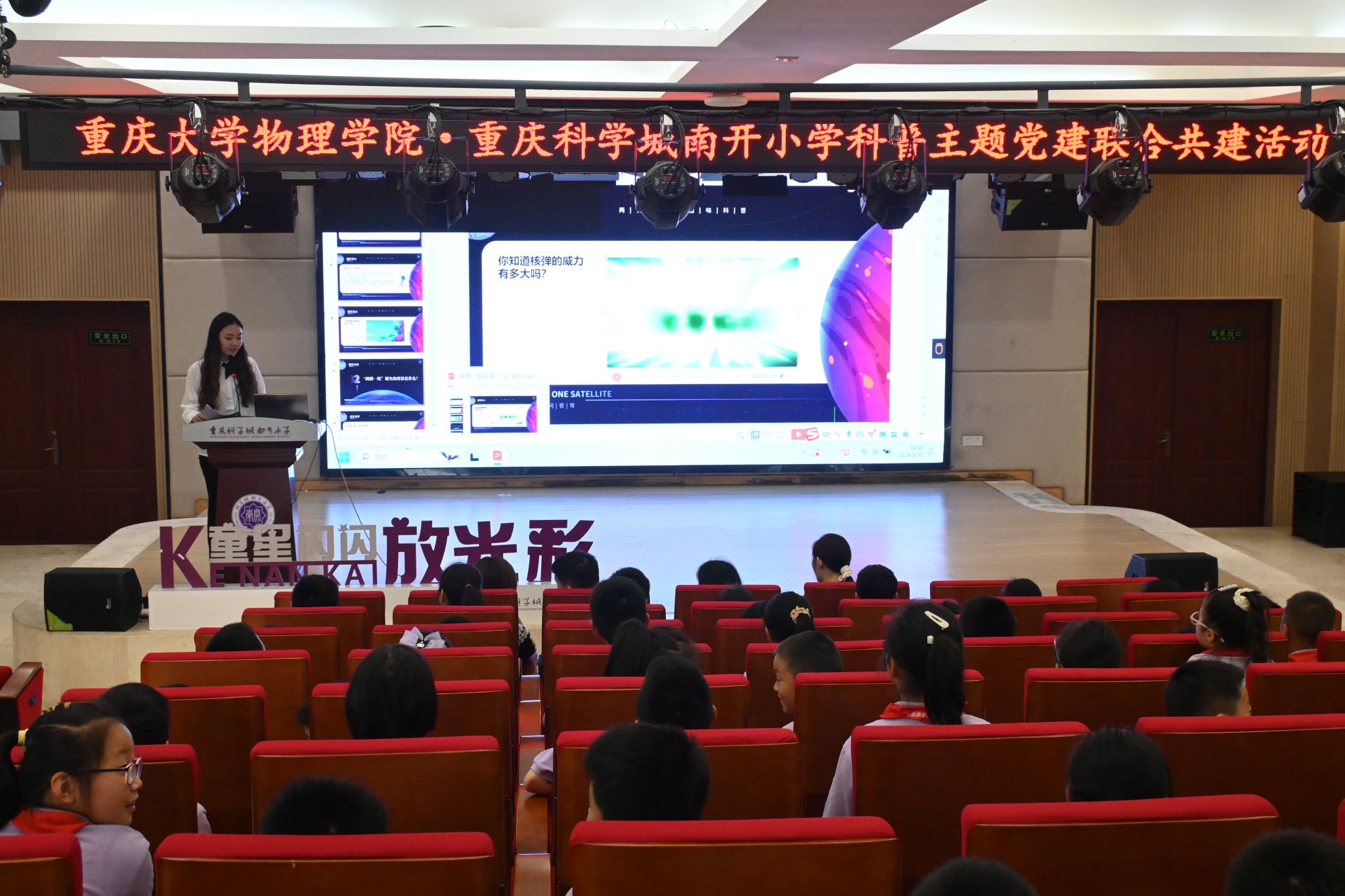 此次活动中,我院应用物理系教工支部、办公室教工支部、本科生第一支部、本科生第二支部、研究生第二支部的30余名师生党员走进小学课堂,为重庆科学城南开小学的孩子们开展了多主题、多形式,各具特色、生动而有深度的科普系列活动。