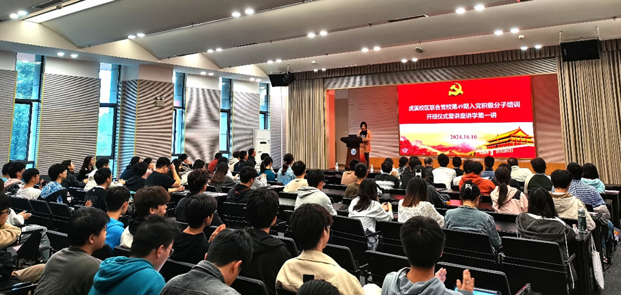 为深入学习贯彻习近平新时代中国特色社会主义思想,全面学习贯彻党的二十大精神和二十届三中全会精神,切实提升入党积极分子培训工作质量,结合学校发展党员工作整体安排,2024年10月10日下午,虎溪校区联合党校在虎溪校区图书馆1F-9报告厅举行了第49期入党积极分子培训开班仪式暨讲座讲学第一讲。