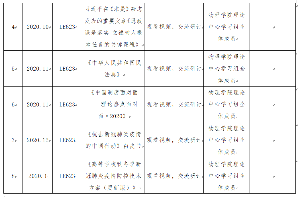 黄色小视频 2020年下半年党委理论中心学习组学习计划表(补充)