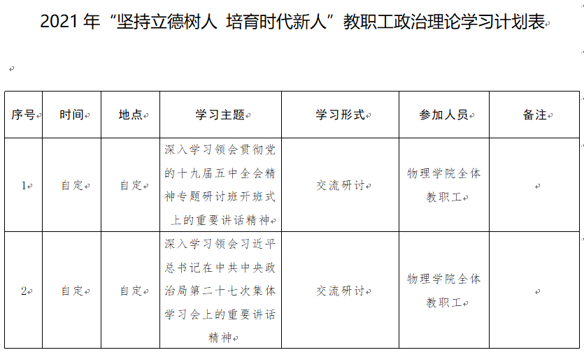 2021年“坚持立德树人 培育时代新人”教职工政治理论学习计划表