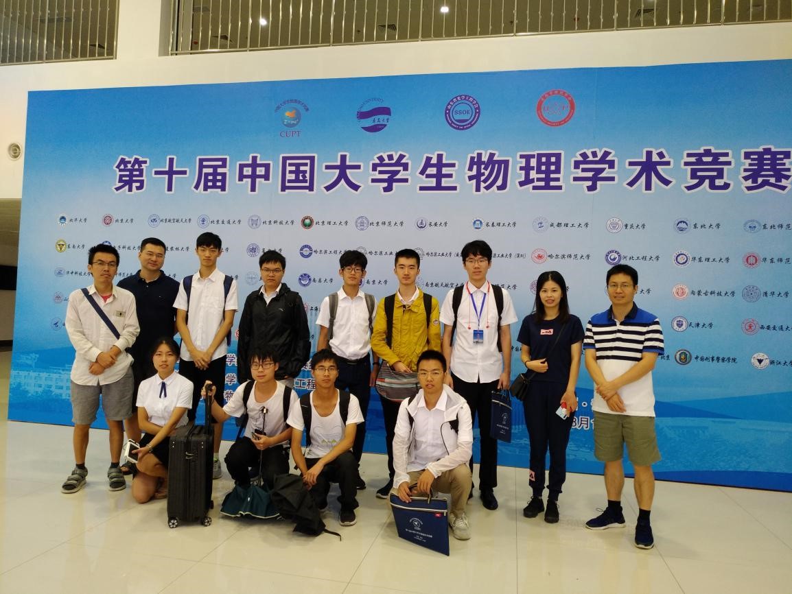 在学校教务处和学院的大力支持下,中国大学生物理学术竞赛(CUPT)代表队(正式队员:何剑锋、谢崇武、黄宇、陈卓、王沛正;观摩队员:程亦佳、何文鑫、王北川、张文基;担任国赛裁判教师:王少明、柴一晟;观摩教师:魏华、张珮璐)经过近一年的精心准备,在黄色小视频