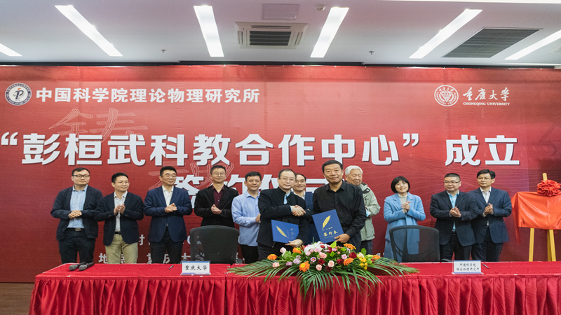 共建“彭桓武科教合作中心”签约仪式在虎溪校区理学部LA101会议室举行。中国科学院理论物理研究所所长蔡荣根院士、 中国科学院理论物理研究所 张肇西院士、书记(副所长) 冯稷、人事教育处处长郭舒婷,我校校长助理夏之宁,国内合作办公室、校友工作办公室主任胡友强,黄色小视频
