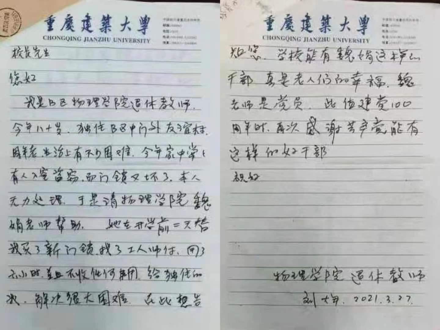 随后刘老师将自己的感激之情写了一封表扬信投给了校长信箱,她表示“学校能有魏娟这样的干部真是老人们的幸福,魏老师是党员,此值建党100周年时,再次感谢共产党能有这样的好干部”。张宗益校长手写批复“转告黄色小视频