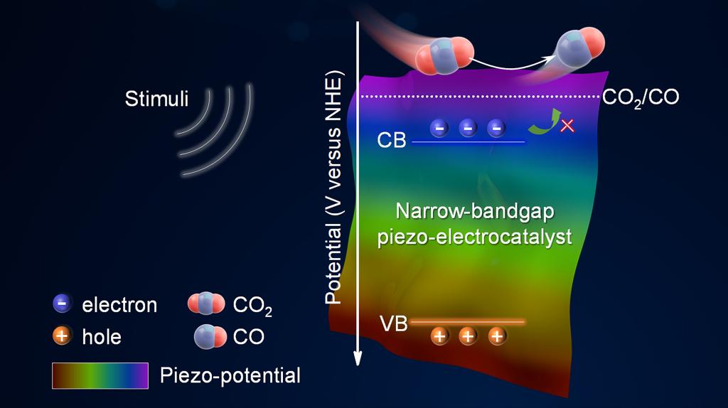 压电催化作为一种新兴的机械-化学能量转换技术,在过去十年间里为绿色化学合成、生命科学、能量收集、环境修复等领域创造了许多新机遇,引起研究者的广泛兴趣。然而,压电催化领域存在一个悬而未决的关键科学问题,即其催化机制一直存在争议。当前学术界有两种主流观点:一个是束缚电荷效应,另一个是能带理论。目前报道的压电材料均具有宽带隙,使得这两种机制同时存在,难以解耦,是导致压电催化机制存在争议的根本原因。