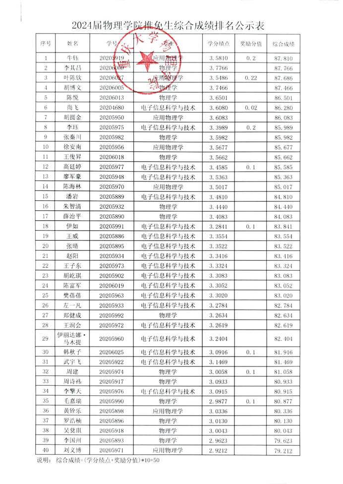 根据学校《关于开展2024年推荐优秀应届本科毕业生免试攻读硕士学位研究生工作的通知》和《黄色小视频 本科毕业生推免攻读硕士研究生实施细则》的相关规定,经过报名、初审、公开答辩程序,现将黄色小视频 2024年推免生综合成绩排名予以公示: