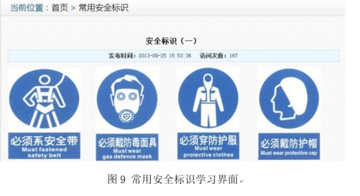 如图 1所示,本系统包括在线学习、练习测试、网上考试三大功能模块及相关管理功能,共有通识类安全、化学类安全、医学生物类安全、机械建筑类安全、电气类安全、辐射类安全、特种设备安全和消防安全 8大类安全题库,分为是非题和单选题两种题型。